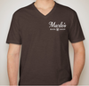 Marlo's Bakeshop logo and details printed on Next Level 60/40 V-Neck Tees:
